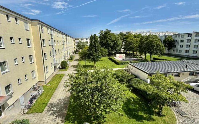 Kitas und Schulen, Ärzte und Apotheken, Postämter und Banken machen den Alltag einfach. Dank der nur 5 Gehminuten entfernten, barrierefreien U-Bahn-Station „Holzapfelkreuth“ ist man mit der Linie U6 in kürzester Zeit im Münchner Stadtzentrum. Zudem befinden sich